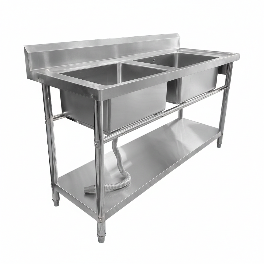 Proveedor:inoxishopDoble Tarja con Mesa Desarmable de Acero Inoxidable 180x70x85cm con Entrepaño